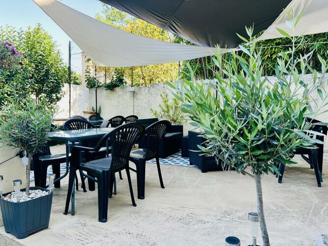À l’extérieur, chacun peut profiter du grand jardin et de la terrasse pour partager des instants conviviaux en fin de journée.